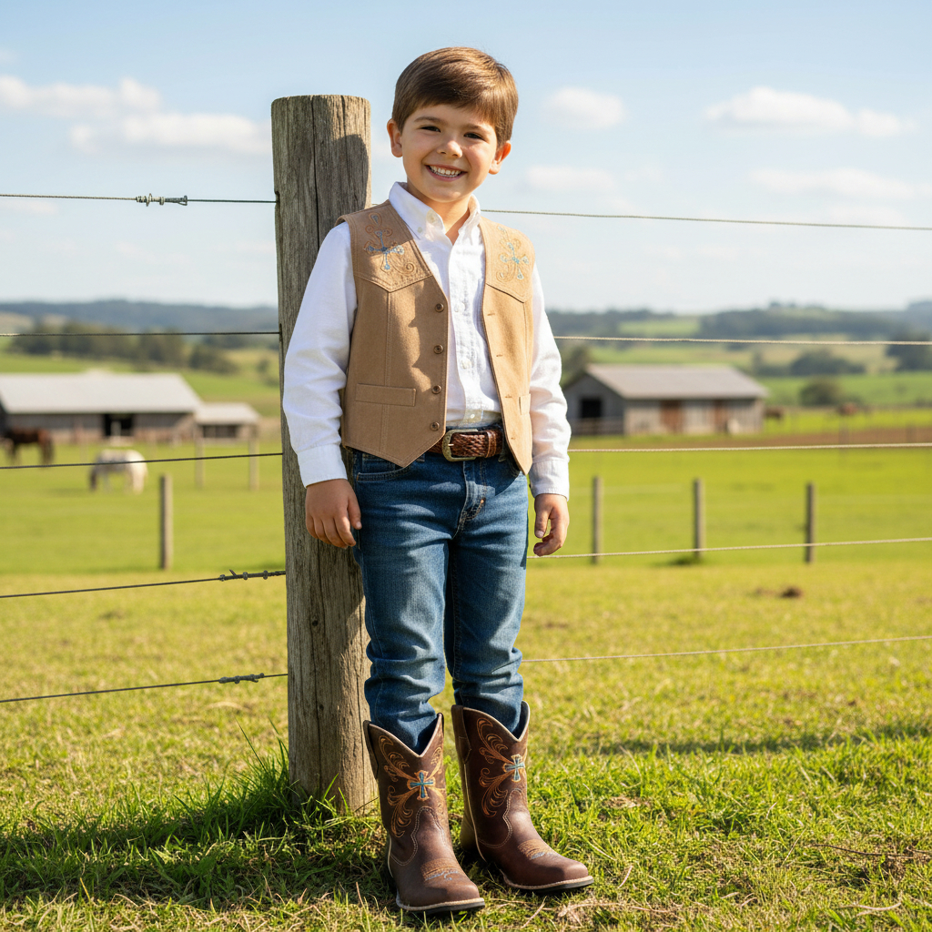Bota Texana Infantil Unissex em Couro Cor Café - Modelo 5018 | Bili Bilu