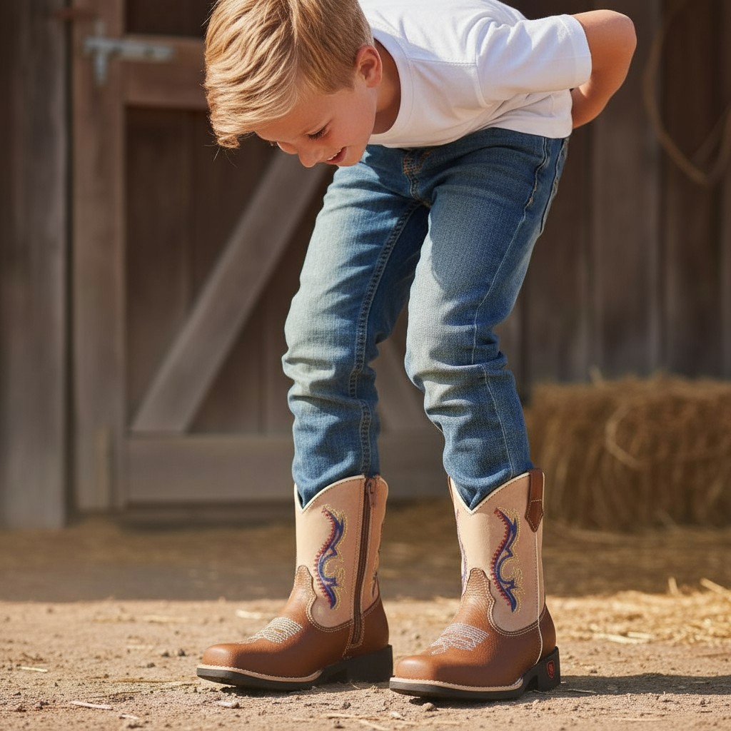 Bota Texana Infantil Unissex em Couro Cor Wisky e Neblina - Modelo 5016 | Bili Bilu